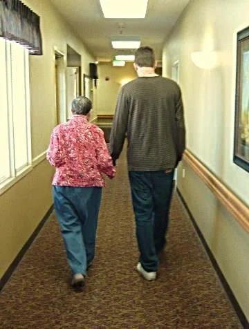 While Alzheimer's disease robbed Mom of many things, it did not (until the very end) rob her of her mobility. When she lived at The Meadows (the place she called home for the last 4 1/2 years of her life), she just loved to walk and walk and walk. She often stopped to look at pictures or people, but those moments of holding her hand and walkin' the halls with her will always be special to all of us.